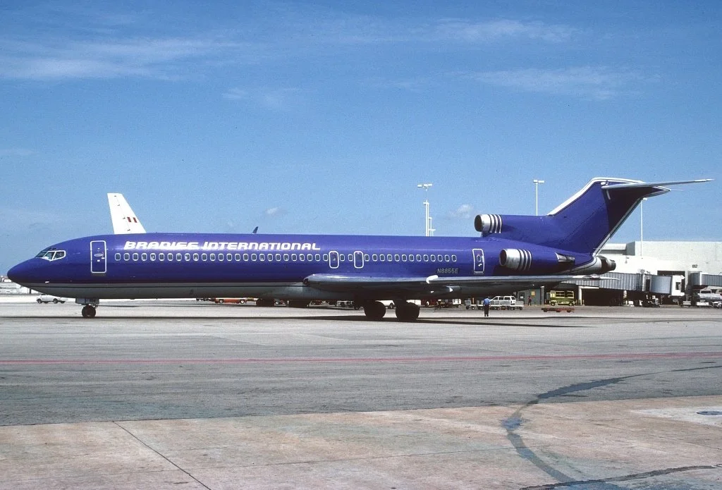 Photo: Braniff International Airlines, Inc., Boeing 727-225 registered as N8855E is taxiing at Miami International Airport in 1992. Photo: Copyright, Petr Popelar